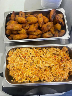 25 servings of arroz con pollo alongside 50 beef empanadas and 50oz of aji sauce.